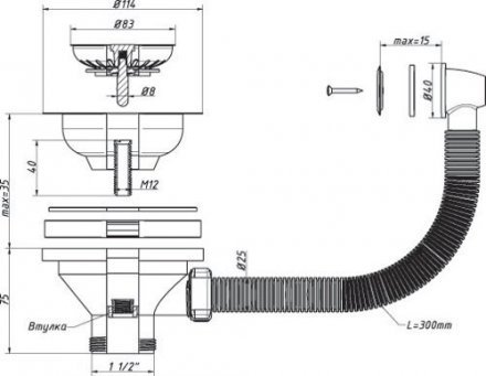 Комплектация:выпуск, пробка-решетка, перелив 300 мм